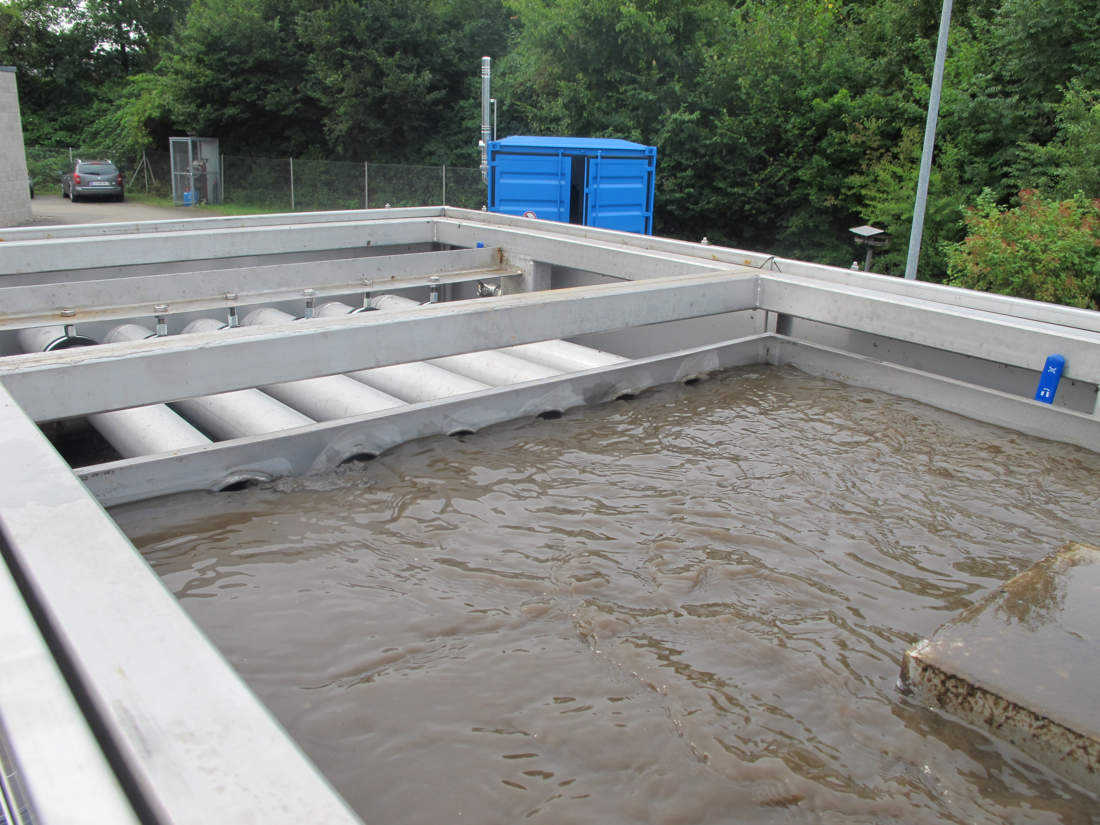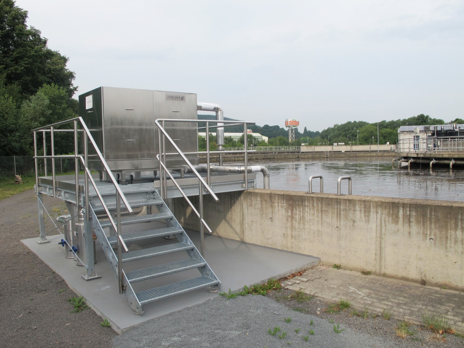 Since the temperature of the treated water is too low to be used directly, a heat pump is combined with the heat exchanger. This allows large amounts of thermal energy to be extracted from the treated water. The water from the clarifier is extracted by a submersible pump and then returned. The heat exchanger can be installed outdoors; only a frost-resistant medium must be used for the domestic water circuit. On the wastewater side, freezing of the wastewater (e.g., during shutdowns in winter) does not pose a problem for the heat exchanger.